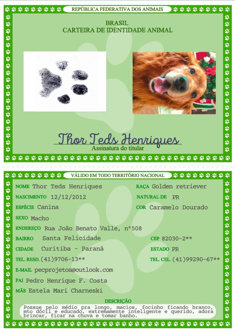 O RG E A CERTIDÃO DO MEU PET É UM DOCUMENTO OFICIAL?